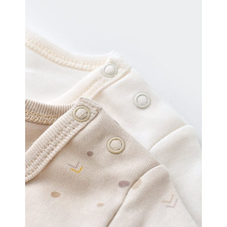 Detské body s dvojitým zapínaním 2ks Stone/Ecru z jemného materiálu prírodnej bavlny zabezpečuje maximálny komfort dieťaťa počas celého dňa. Body plní funkciu spodnej bielizne, a preto by sa v žiadnom prípade nemala podceňovať jeho kvalita. Oblečenie z organickej BIO bavlny pôsobí citlivo na detskú pokožku a tiež nespôsobuje žiadne kožné podráždenia ani alergické reakcie. Okrem toho body chráni vrchnú vrstvu oblečenia v prípade neželaného úniku. Biobavlna, na rozdiel od klasickej bavlny, odoláva lepšie častému praniu, ktorému sa u detí nevyhneme.